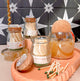 Glass jar features a crystal on its lid for the perfect mix between functionality + decor.