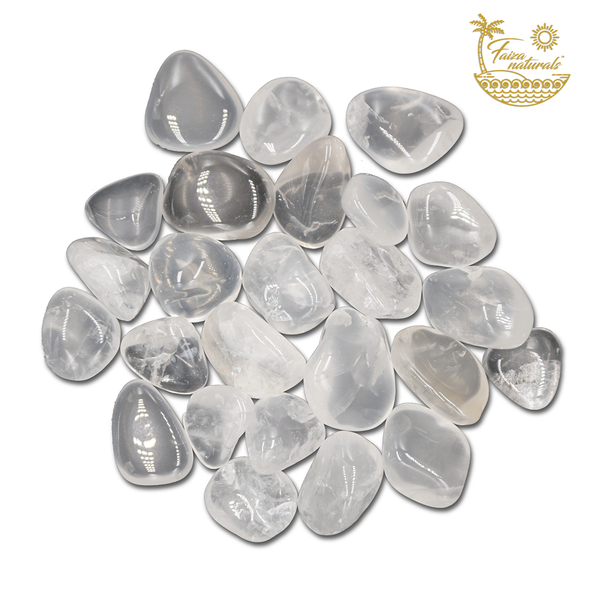 Faiza Naturals is proud to present these all natural and hand polished tumbled transparent Clear Quartz (3-4 cm)! Mines in Brazil have been verified to conduct sustainable mining practices and offer an ethical and humane work environment for their miners.