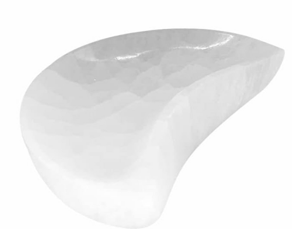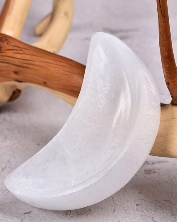 ✔ SIZE: Moon shape selenite bowl is approximately 4" in length, 1" in height, weight approx 180g/piece. Note - Selenite is not to be exposed to water as it is gypsum and is a very soft mineral. ✔ SELENITE CRYSTAL BOWL: Use selenite for your smudging herbs, resins and woods to enhance the cleansing effects of the smudge. Charge your sages with selenite to improve the healing potential of a cleansing ritual. ✔ CRYSTAL CHARGING BOWL: Selenite is one of the most popular crystals used to cleanse and charge other crystals and stones due to its powerful metaphysical properties and the ability to charge itself. ✔ MOTHER NATURE: Each bowl is unique and nature made and hand carved, so size, color and shape may vary, some might have natural marks.