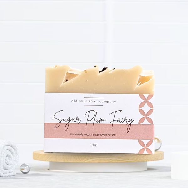 A whimsical take on holiday-inspired pampering: the Sugar Plum Fairy Soap! It'll make you feel as sweet as the fairest of them all. Brighten your shower with a little fairy magic! 6.5oz Vegan Friendly Ingredients: Cocos Nucifera (Coconut) oil, Helianthus Annuus (Sunflower) Seed Oil, Aqua, Olea Europaea (Olive) oil, Sodium Hydroxide, Citrus Aurantium Dulcis (Orange) Peel Oil, Mentha Piperita (Peppermint) oil, Cinnamomum Zeylanicum (Cinnamon) Leaf Oil