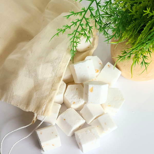 Elevate your bathing experience with our Milk & Honey Mini Shower Steamers. These petite yet charming steamers not only add a touch of luxury to your bath and beauty collection but also infuse your shower with a delightful, fresh aroma. Simply place at least two steamers on your shower shelf or hang them from your shower head. As the steam rises, sprinkle them with water to activate their aromatic powers. Soon, your shower will be filled with the invigorating scent, turning your daily routine into a spa-like indulgence. These steamers are crafted with care, featuring high-quality ingredients like Sodium Bicarbonate (Baking Soda), Citric Acid, and your choice of Fragrance or Essential Oils. We offer two delightful essential oil scents: Lavender Eucalyptus and Peppermint Eucalyptus. Transform your ordinary shower into a fragrant oasis with our Milk & Honey Mini Shower Steamers, and start your day on a refreshing note.
