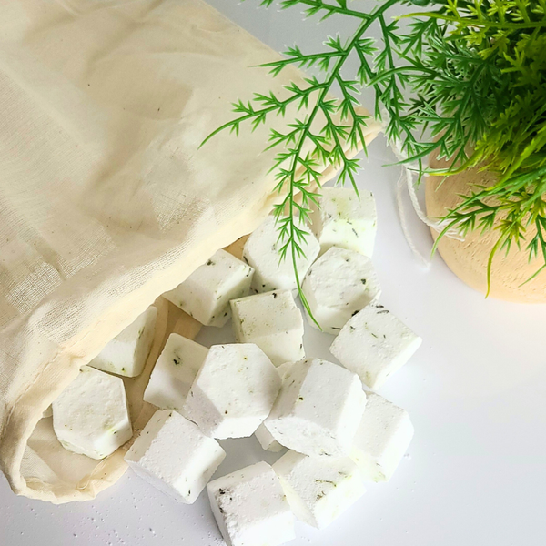 Elevate Your Shower Experience with Peppermint Eucalyptus Mini Steamers These charming mini steamers not only enhance the aesthetics of your bath and beauty display but also fill your shower with a refreshing and invigorating aroma. How to use: - Place at least two steamers on your shower shelf or hang them from your shower head. - Sprinkle with water to activate. - Enjoy the aromatic experience as the steam carries the scent around. Ingredients: - Sodium Bicarbonate (Baking Soda) - Citric Acid - Fragrance or Essential Oils - Dried Florals - Witch Hazel Available in 100% essential oil scents: - Lavender Eucalyptus - Peppermint Eucalyptus