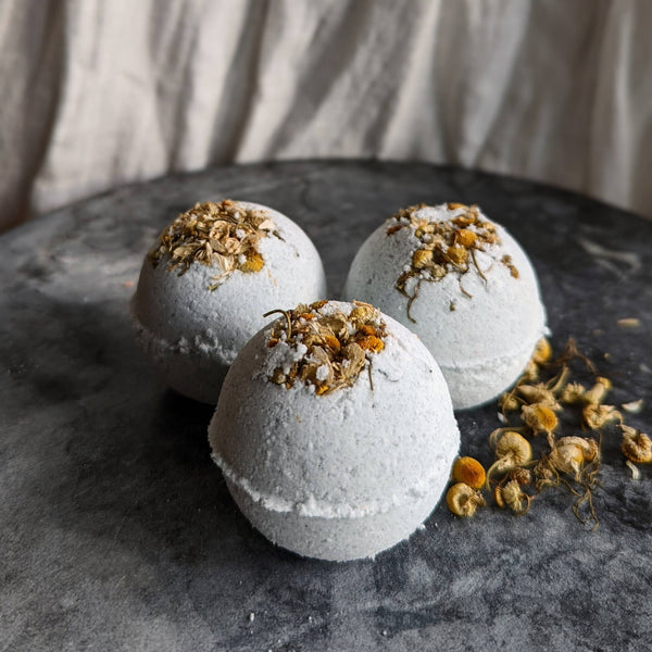 Revitalize your bath experience with our "Refresh" natural bath bomb. This revitalizing fizzie is designed to provide respiratory and allergy support, featuring the invigorating scents of eucalyptus and peppermint. Whether you're looking to clear congestion, find comfort during illness, or simply refresh yourself, this bath bomb has you covered. Ingredients include baking soda, citric acid, cornstarch, epsom salt, sunflower oil, spirulina, and essential oils of eucalyptus and peppermint. It also contains botanicals like chamomile and peppermint to enhance your bath experience. Each bath bomb is medium-sized with a 2" diameter and weighs 2.5 oz. We package them in biodegradable shrink-wrap to ensure freshness, and the band label provides information about the scent and ingredients. Enjoy a rejuvenating bath ritual with our "Refresh" bath bomb.