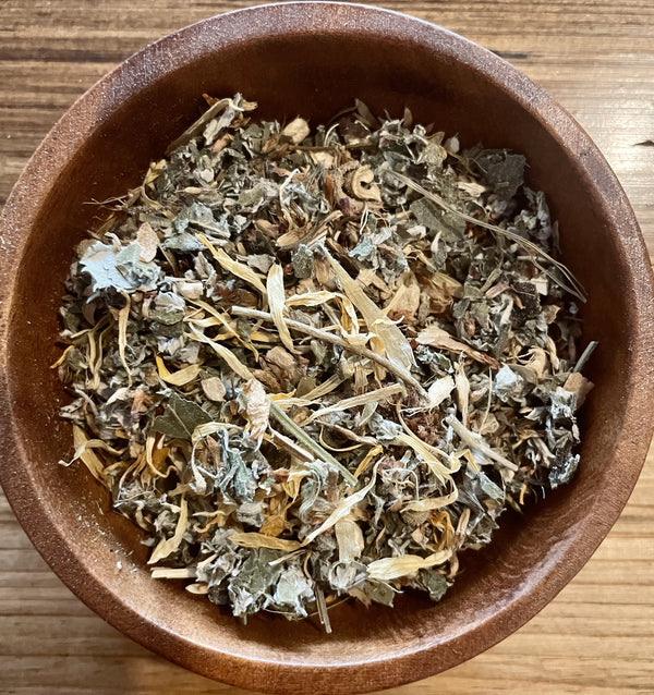 Ingredients: Organic Calendula Flower, Organic Raspberry Leaf, Organic Red Clover Blossom, Organic Ginger Root, Organic Hop Stobiles