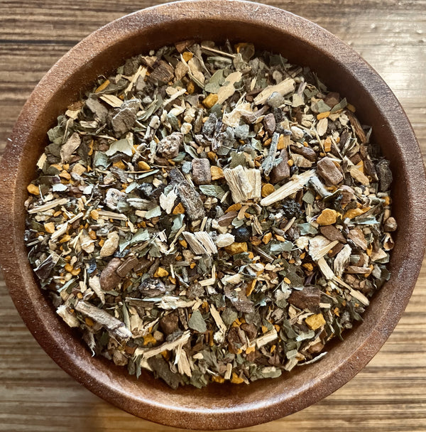Ingredients: Organic Cinnamon Bark, Organic Turmeric Root, Organic Licorice Root, Organic Ginger Root, Organic Black Pepper, Organic Bay Leaf