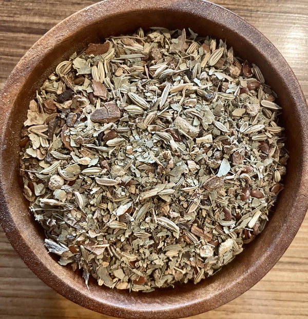 Ingredients: Organic Fennel Seed, Organic Senna Leaf, Organic Ginger Root, Organic Licorice Root, Organic Cinnamon Bark, Organic Flax Seed, Organic Triphala