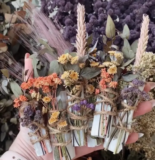 Our Selenite Flower Wand seamlessly blends aesthetic beauty with spiritual cleansing. Crafted by hand, each wand features local dried florals, making them unique pieces of art. Selenite, known for its purification properties, cleanses negative energies, creating a serene ambiance. Lightweight at 1.8 ounces (49.9 grams), this wand enhances any space and elevates your energy. Embrace the elegance of nature and the soothing power of selenite with this unique creation.