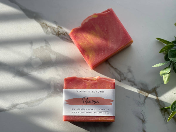 Indulge in the sweet and floral scent of our Plumeria Soap bar. Each soap bar is carefully crafted with luxurious shea butter and kaolin clay to create a smooth and creamy lather. Our ingredients include olive oil, coconut oil, sustainable palm oil, castor oil, and mica, along with a delightful blend of fragrances and essential oils. Each bar weighs approximately 4.5 oz, making it perfect for a refreshing bath or shower experience.