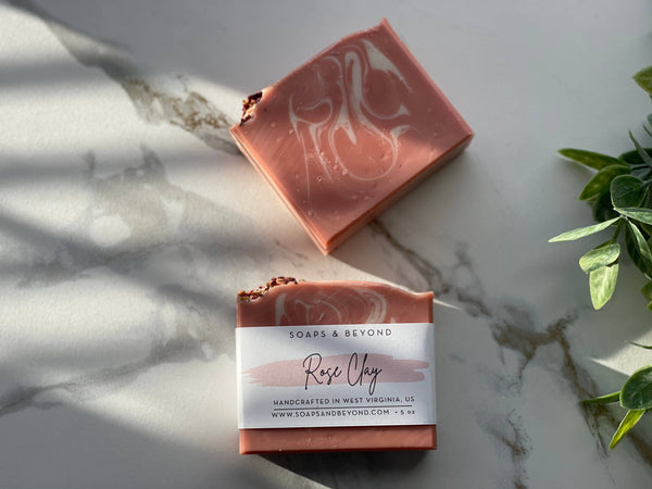 Experience the natural luxury of our Rose Clay Soap Bar. Crafted with Shea butter and Rose clay, it creates a creamy lather that pampers your skin. Scented with a 100% natural essential oil blend, this soap is a soothing and aromatic delight. Ingredients: Olea europaea (Olive oil), Water, Sodium hydroxide (Lye), Cocos nucifera (Coconut oil), Elaeis (Sustainable palm oil), Vitellaria paradoxa (Shea butter), Ricinus communis (Castor oil), Rose clay, and Essential oil blend. Each 4.5 oz bar is handmade, ensuring a unique and special product every time.