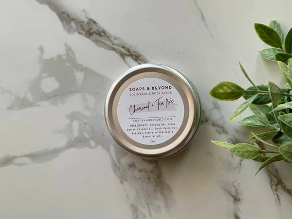 Ingredients: Cocoa butter, Coconut oil, Sugar, Shea butter, Kaolin clay, Emulsifying wax, Beeswax, Activated charcoal, Tea tree and Litsea Cubeba essentail oils.