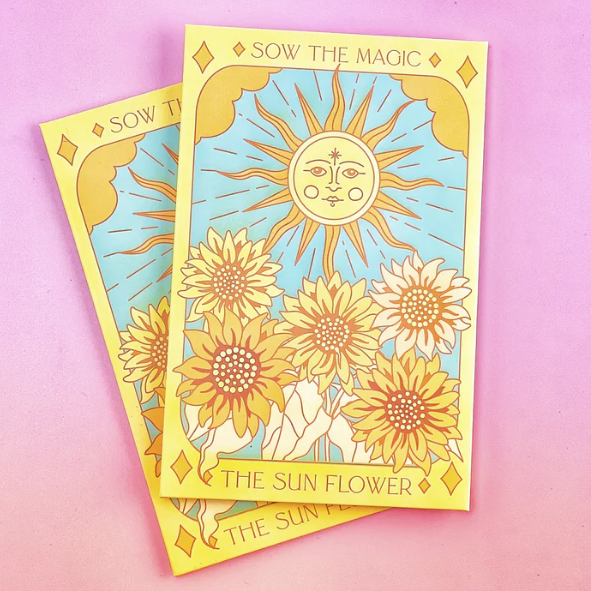The inspiration for this envelope is the Sun tarot, a card of optimism, freedom and fun! Anticipate tall, intense blooms that influence your garden landscape by radiating positivity.