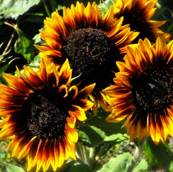 Very uniform variety. Dark-centered blooms are 4-5 inches across with petals that gradually fade from a dark red base to golden-yellow tips. Branching habit with long side stems, one of the best varieties for cut flowers.