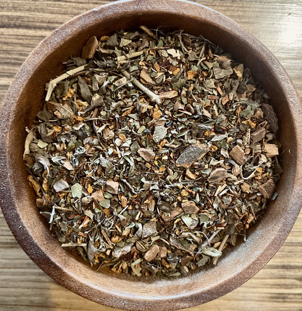Ingredients: Organic Tulsi Leaf, Rooibos Herb, Organic Gymnema Sylvestre Leaf, Organic Cinnamon Bark, Organic Turmeric Root, Organic Haritaki Herb, Organic Hibiscus Flower