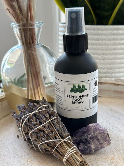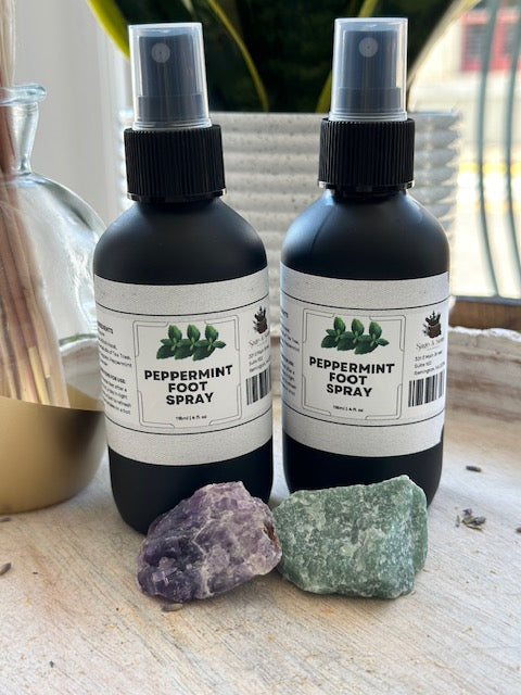 Our Peppermint Foot Spray - an invigorating and refreshing spray designed to soothe and revitalize tired, achy feet.