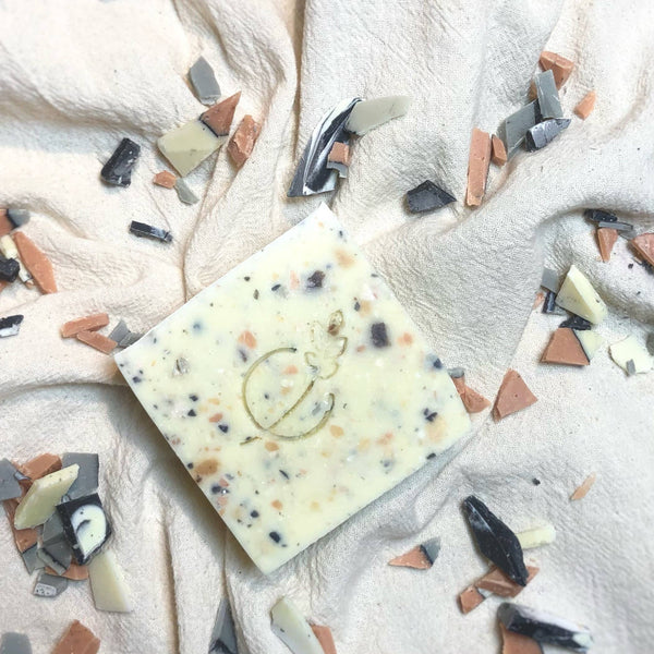 Indulge in the luxury of small-batch artisan soaps, made with only the highest quality ingredients. Our soaps contain a base of saponified olive oil, organic coconut oil, and organic shea butter, leaving your skin feeling soft, smooth, and hydrated. Our soaps are colored using only natural clays, spices, and other organic plant material, for a gentle and effective cleanse that is safe for all skin types. Our soaps are perfect for hands, face, and body, but keep in mind that some of our soaps are especially exfoliating such as the Espresso and Vanilla Chai, making them ideal for use on the body in a warm shower.