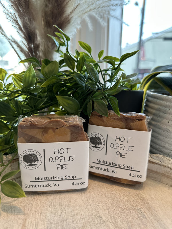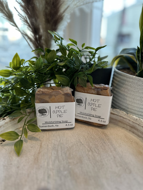 Imagine the sweet and tart scent of crisp apples mingling with the warm spices of cinnamon and nutmeg. It's like a cozy autumn day wrapped up in a bar of soap. But it's not just about the fragrance. This handcrafted soap is made with gentle, skin-loving ingredients that will leave your skin feeling cleansed, nourished, and delicately scented.   Perfect for: A luxurious self-care experience A thoughtful gift for any occasion Anyone who loves the comforting scent of apple pie Experience the joy of Hot Apple Pie, every time you wash.