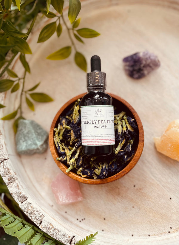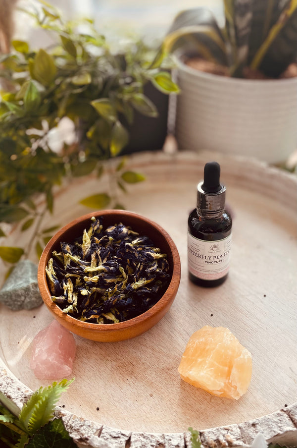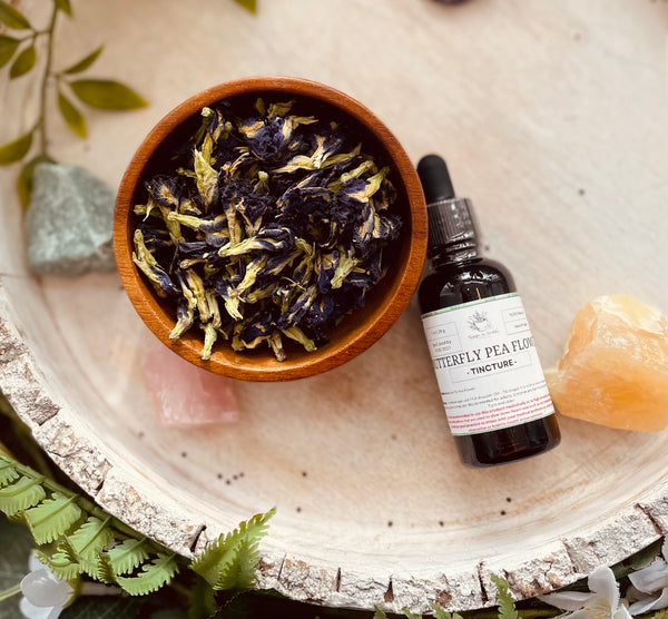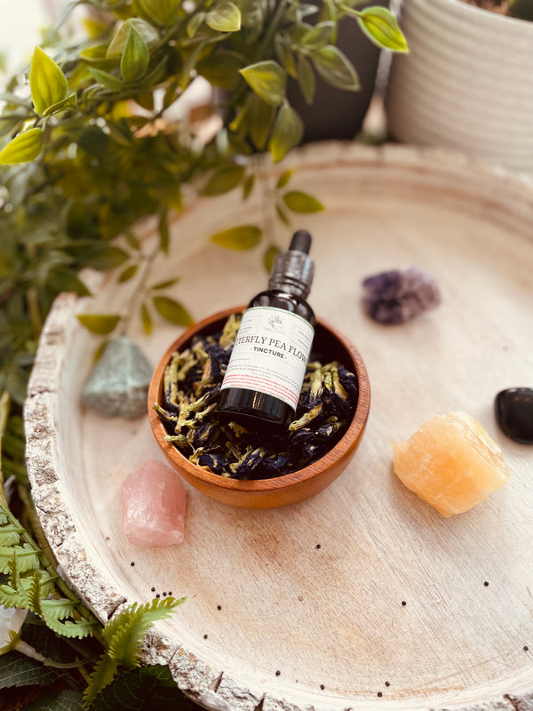 Introducing Butterfly Pea Flower Tincture - an all-natural, concentrated liquid extract of the butterfly pea flower. This tincture contains potent antioxidants, anti-inflammatory properties, and may help reduce stress and improve memory. Add to your daily routine for overall wellbeing.