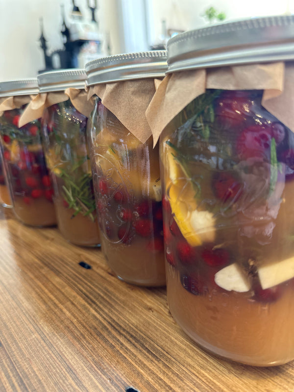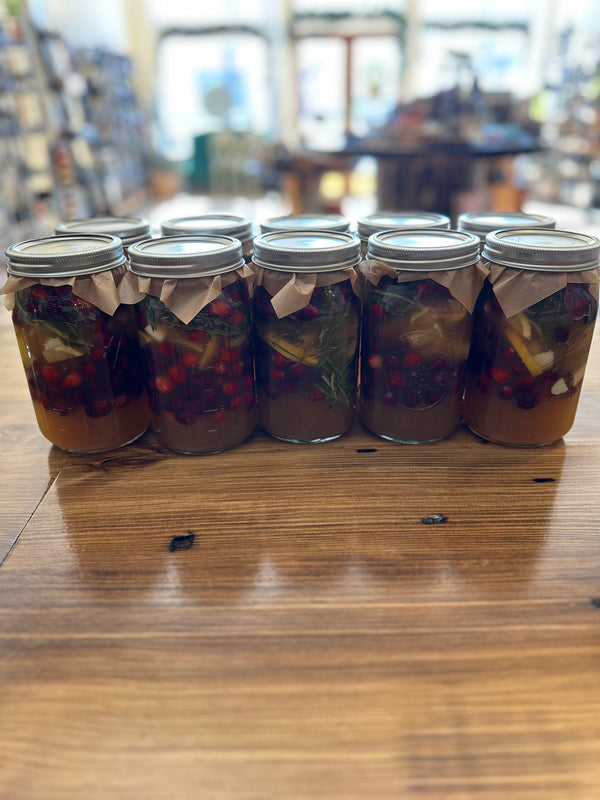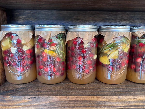 Ingredients: Whole Cranberries, Organic Orange, Organic Lemon, Organic Ginger, Organic Garlic, Fresh Thyme, Fresh Rosemary, Apple Cider Vinegar *with Mother