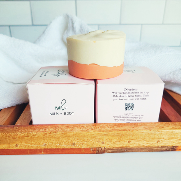 Our Rosewater Face Bar has been a top seller since day one! Formulated with potent natural ingredients, this luxurious bar is enriched with rose clay and kaolin clay for a deep yet gentle cleanse. The rosewater base provides soothing and brightening effects, leaving your skin feeling soft and supple. Regular use of this soap can help to improve skin texture, reduce redness and irritation, and promote a more youthful and radiant complexion. Indulge in the gentle cleansing properties and natural goodness of this soap for a truly pampered and rejuvenating facial experience.